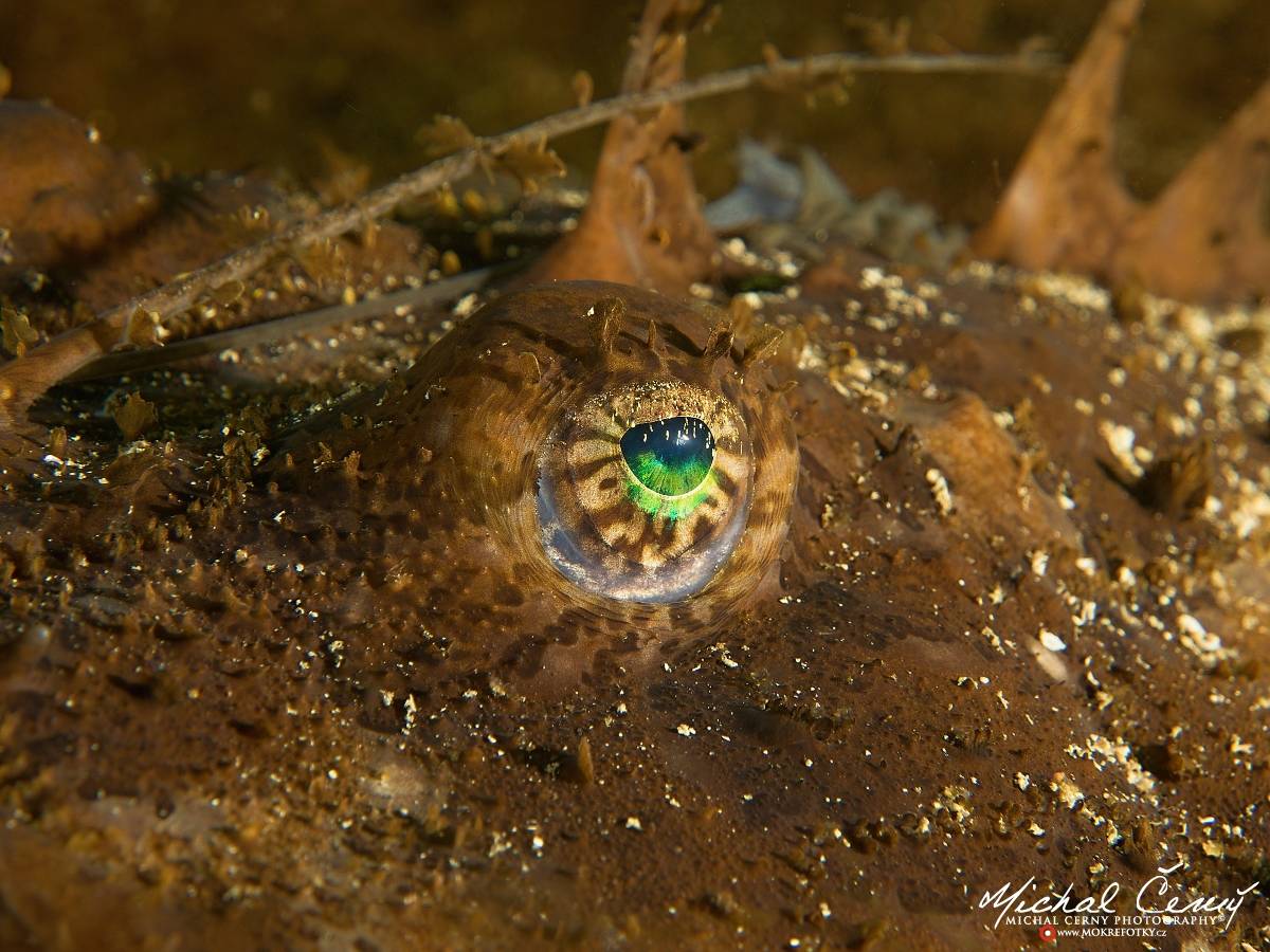 Detail oka mořského ďase, i díky zelené barvě jsem si tuto fotografii pojmenoval "magické oko".