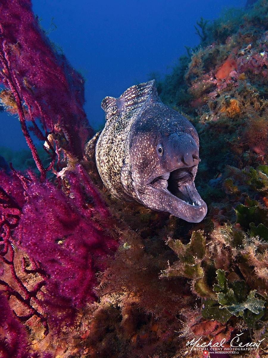 Během dne jsou většinou murény zalezlé v dírách ve skalách a kouká jim ven jen hlava, potkat přes den vylezlou murénu plující podél útesu je tedy spíše vyjímkou.