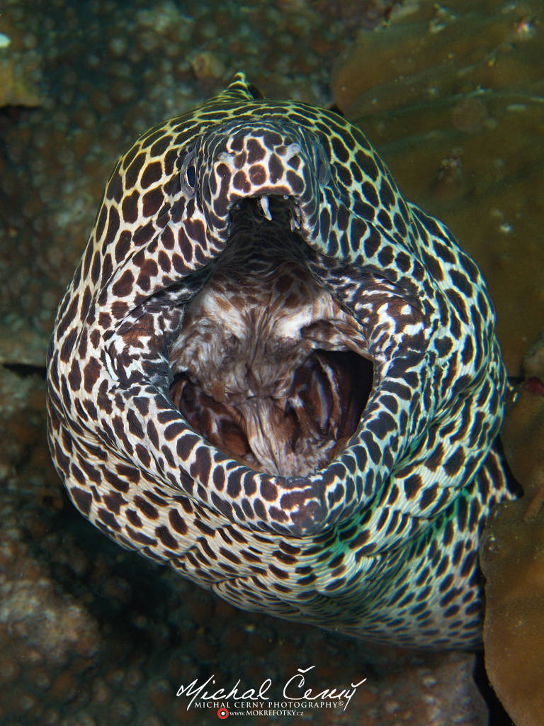 Tento druh murény dorůstá délky až 3 metry. I když vypadá hrůzostrašně, když otevře svou tlamu dokořán, tak není pro člověka nijak nebezpečná.