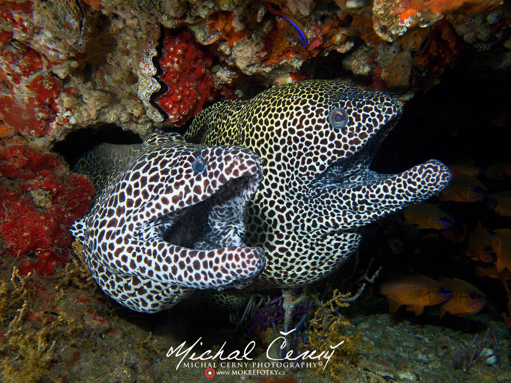 Tento druh murény často obývá jeden úkryt v několika jedincích.