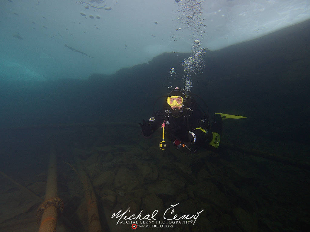 Potápění pod ledem je hodně specifické, prakticky vždy je při něm však mnohem lepší viditelnost než v létě. Na tomto lomu bývá v zimě viditelnost i 20 metrů!