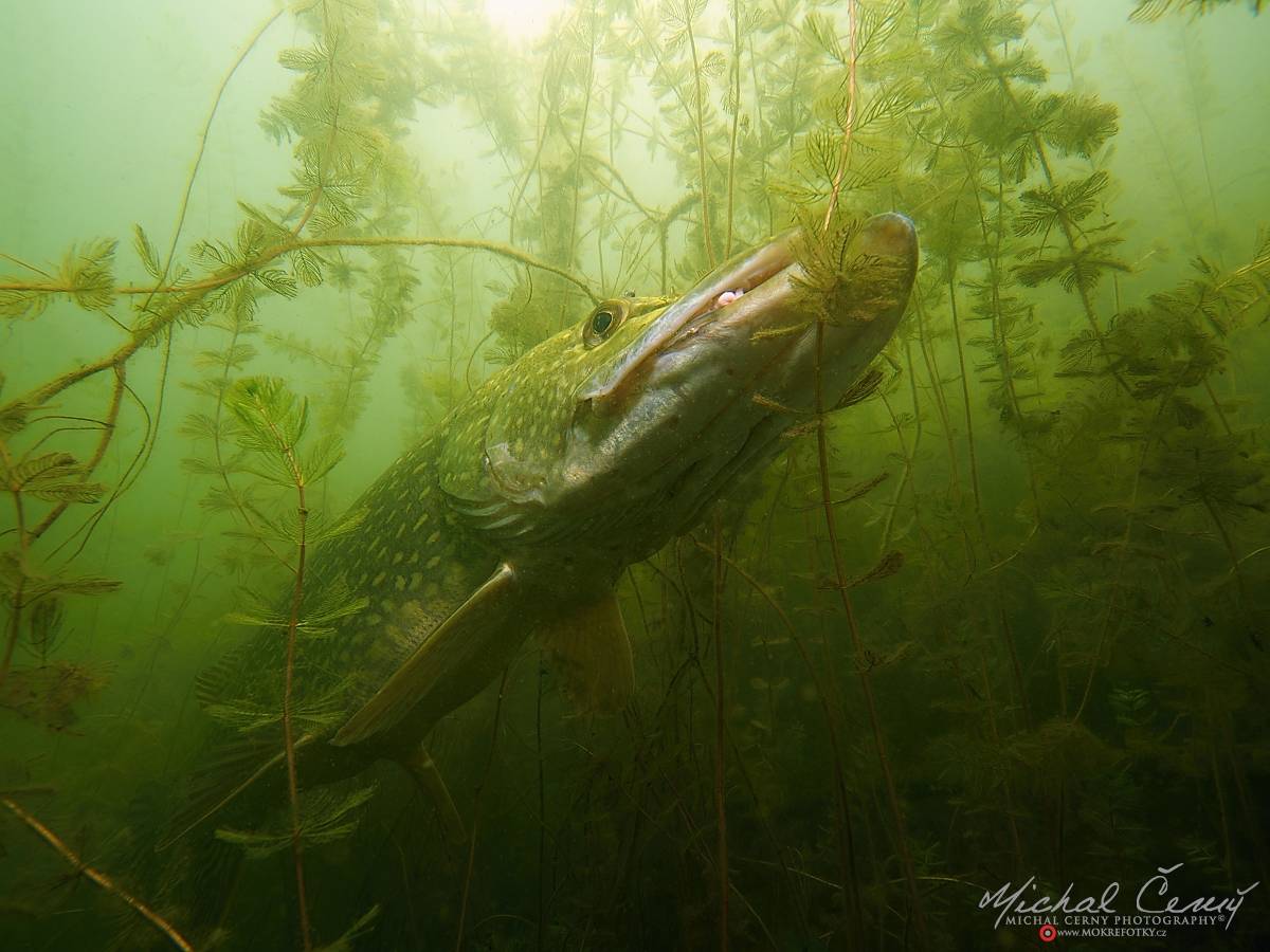 Štiky se rády ukrývají v porostu vodních rostlin, odkud pak zaútočí na menší rybky plující kolem.