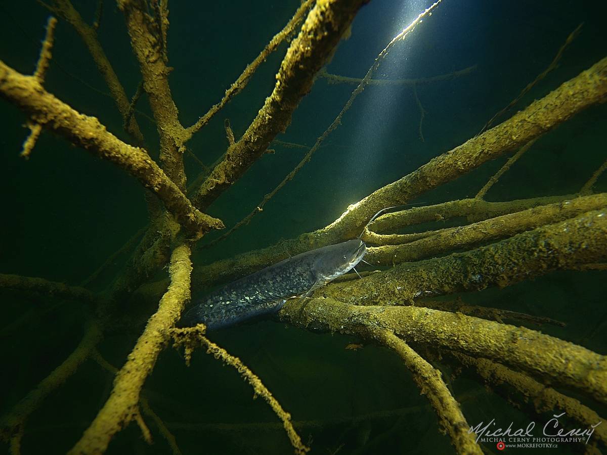 Sumci rádi odpočívají v kořenech či větvých potopených stromů.