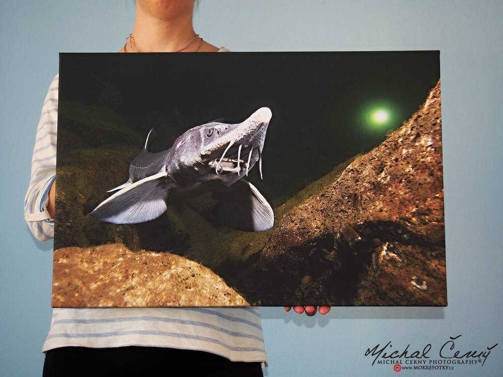 jeseter v letu, rozměr 40x60 cm, standardní cena 2.400,- Kč; nyní 1.200,- Kč