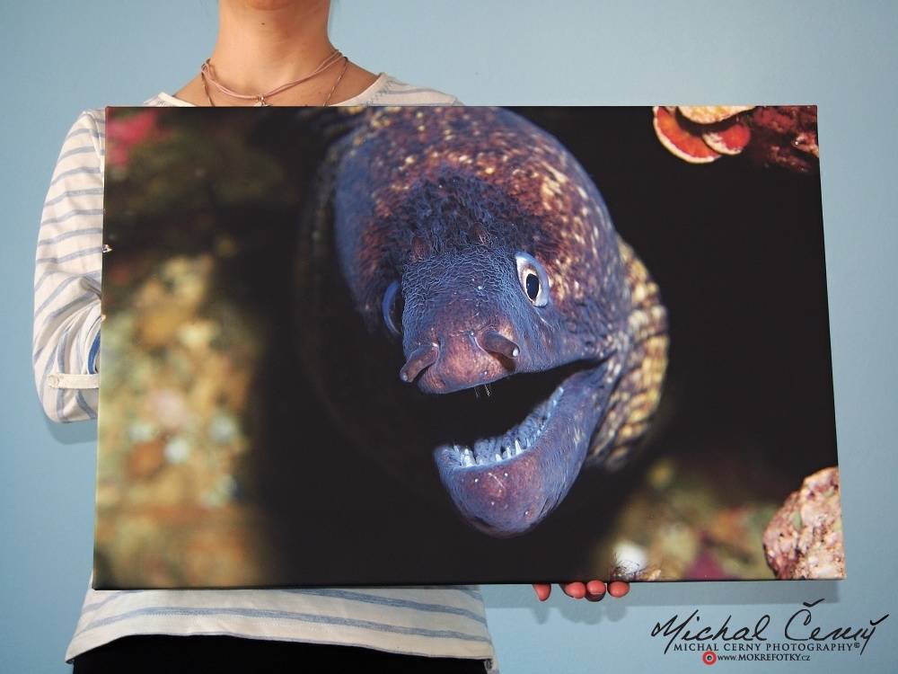 štěkající muréna, rozměr 40x60 cm, standardní cena 2.400,- Kč; nyní 1.200,- Kč